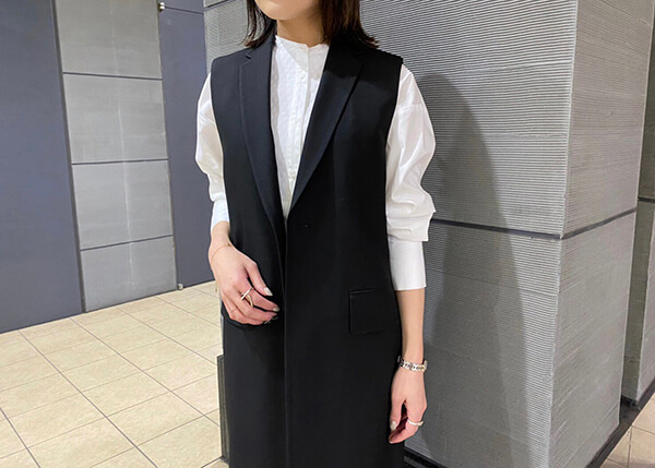 インナー次第で雰囲気も大きく変わるので、様々なレイヤードスタイルが楽しめる一着です!!