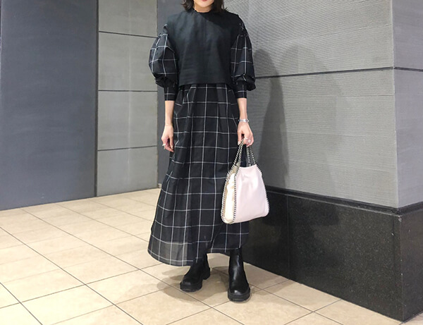ウィンドウペンチェック柄を使用したシャツドレス。