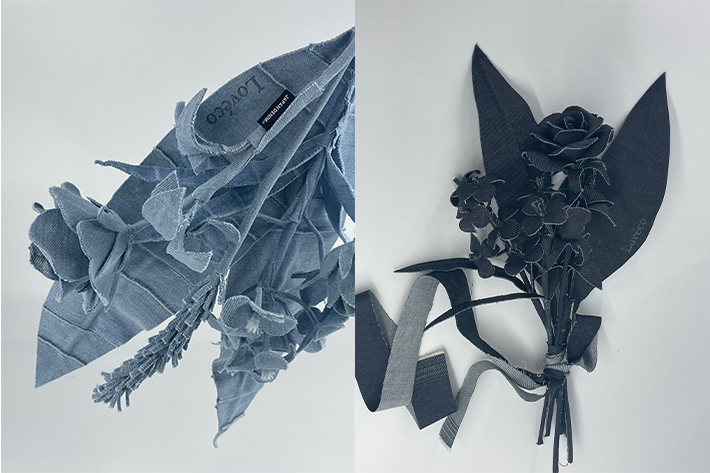 オープン記念として、工場で残った残生地を使用したサスティナブルフラワーを展開する「LOVÉCO」とコラボし、デニムのB反や残布他を利用してアップサイクルなデニムフラワーを販売致します。