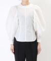 インナーには雪解けから春の芽吹きをジャガードで表現しているボリュームブラウスを合わせて、より女性らしさのある着こなしに。