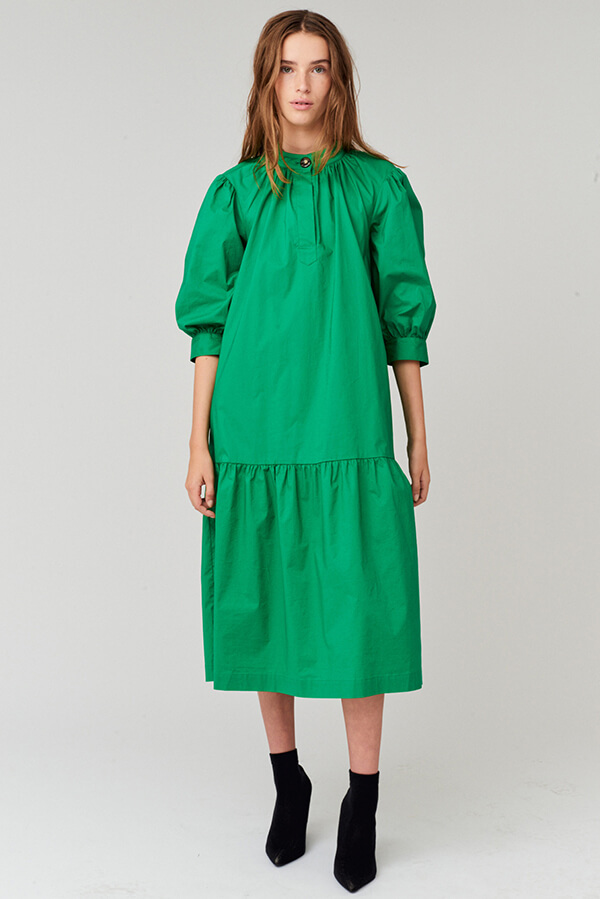 この春のトレンドカラーでもある色鮮やかなグリーンが引き立つワンピース。