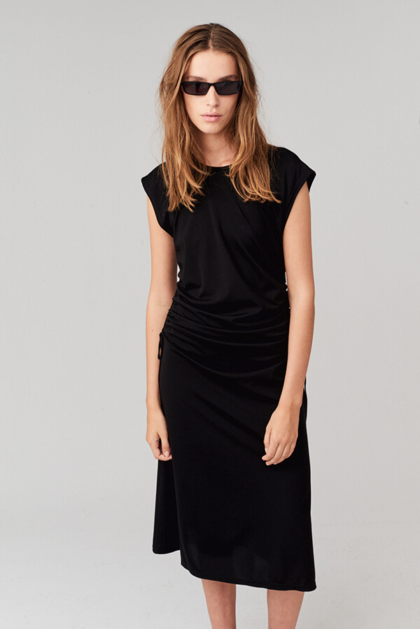 サイドにシャーリングディテールが施されたカットソーワンピース。