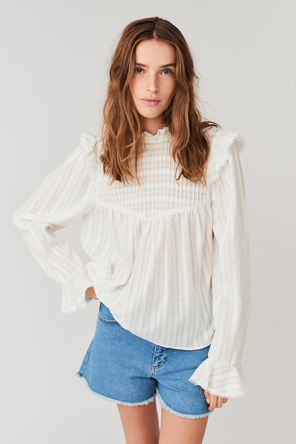 「Designers Remix(デザイナーズリミックス)」ならではのフリルディテールが施されたブラウス。