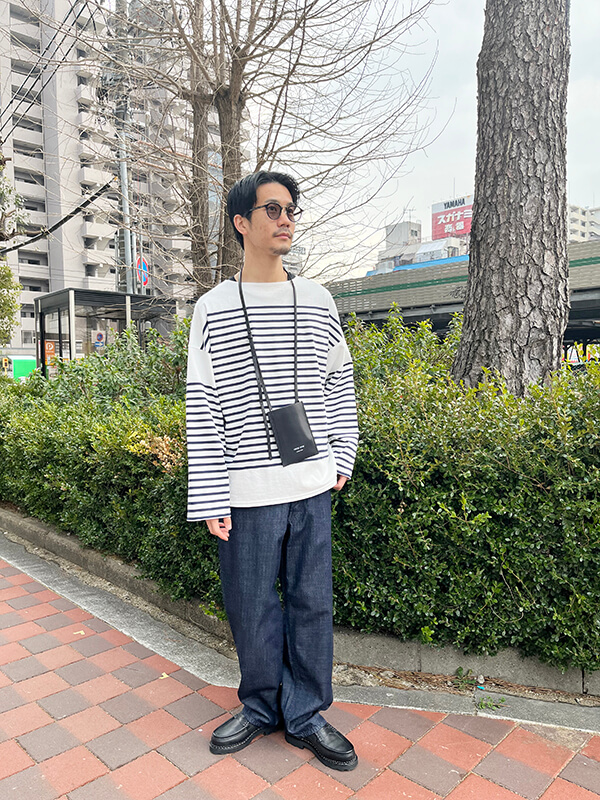 マーカらしいゆとりあるサイジングなのですが、首周りが空いていることでラフさがあり、ざっくりと着用できます。