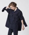 ゆったりとしたルーズシルエット、袖の中間からも腕を出せるギミック、サイドの深めのスリット、胸の位置の大きなポケットが魅力です。