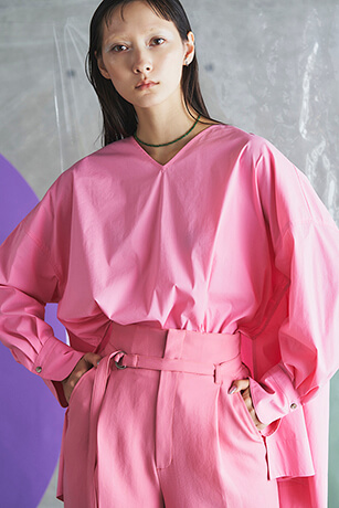 カットソー部分は透けにくい少し厚みのある生地を使用し、裾はランダムな動きのあるフレアとプリーツディテールはお腹周りをカバーしてくれる機能性とデザイン性を兼ね備えています。
