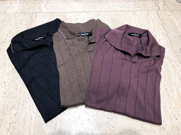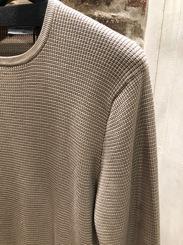 グランサッソはイタリア最大のニットブランドとして、有名ブランドのニットを手掛けているので、クオリティ面もかなりレベルが高く、画像では伝わらない肌触りは是非店頭でお確かめ下さい(^^)