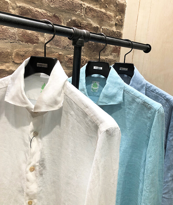 入荷している物はカジュアルなリネン素材の物と、定番展開されているドレスシャツの2型です。