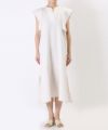同じく胸元がスッキリしたVネックライン。小柄な彼女でもバランスよく着こなせる着丈です!