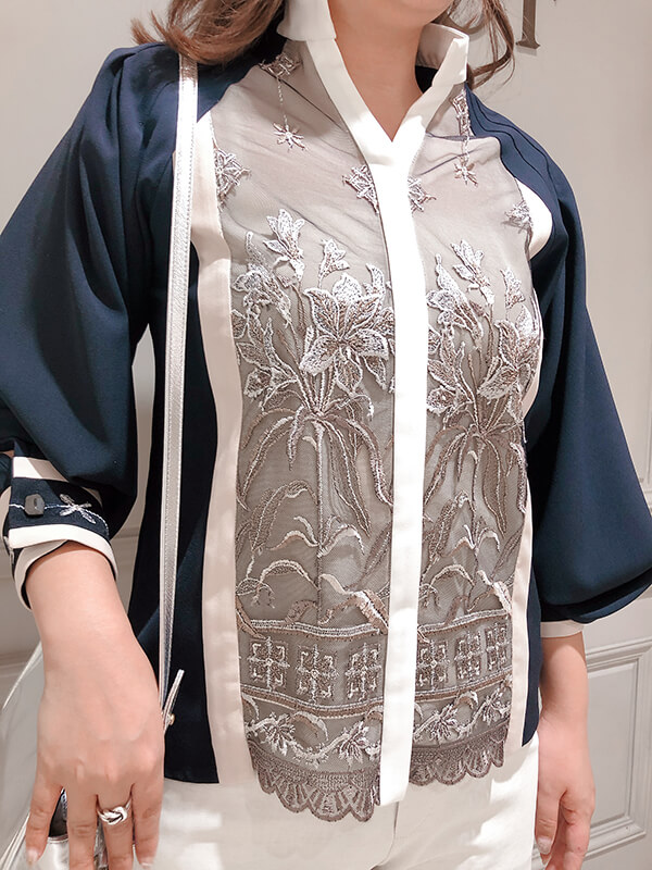大きめの柄が似合うストレートさんには、ミューラルの華やかな刺繍もよく似合います✨