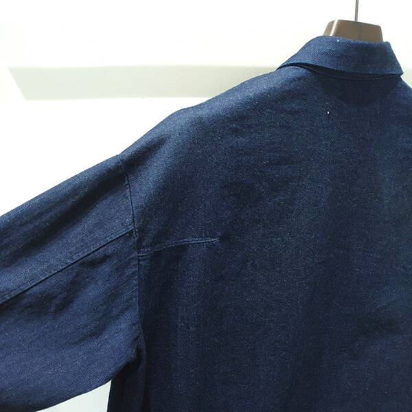 肩周りも少し立体的にして、ゆとりを持たせ、デニムなのに着ていて楽な仕様です。