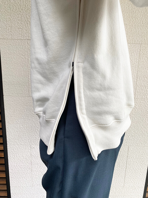 裾にもギミックがあり、ジップで開閉が可能になっておりこういった細かなディテールが服好きをうならせて虜にする部分ですね。