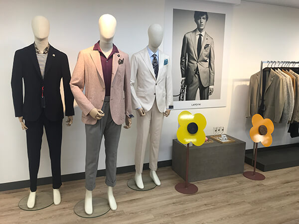 また、昨今の気温の上昇もあり、盛夏まで着ることができる麻混素材やシアサッカーを使ったジャケットの需要が更に高まっており、それらアイテムが増えている印象です。