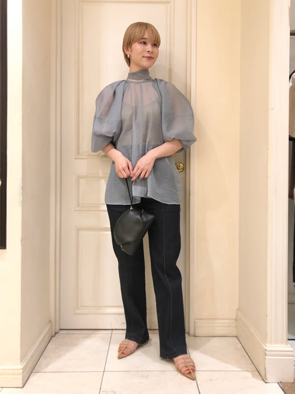 今回は普段選ばないCLANEのシアーブラウスをチョイス。