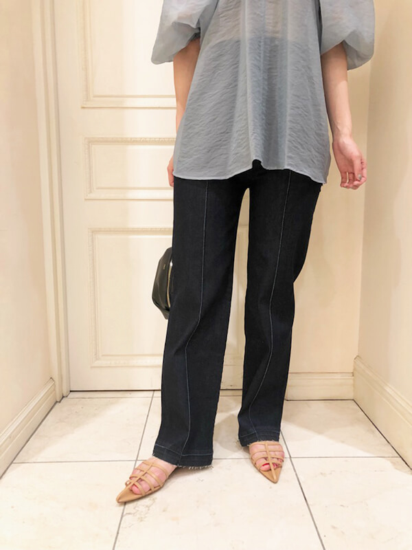 ほんのり透けるハイライズも腰位置を高く見せてくれ、骨格ウェーブさんにおすすめです!
