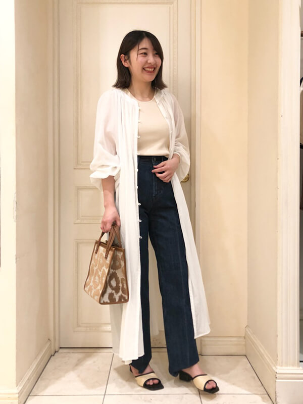 ワンピースを羽織り.縦長シルエットを作ることで、さらにすっきりと綺麗に見せてくれます!