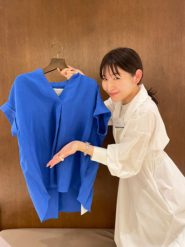 涼しげなリネンブラウスはさらっとした肌触りで着心地抜群です。