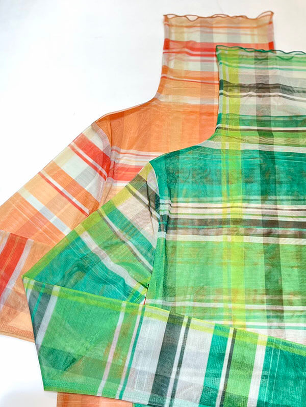 色鮮やかな同系色のチェックが、コーディネート全体をパッと明るくしてくれます!