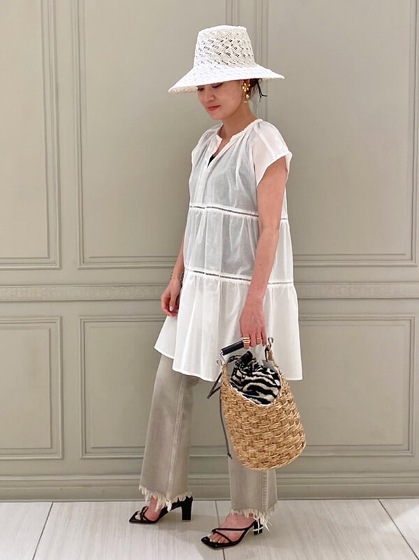 涼しげなチュニックブラウスで一気に春夏らしく、体型カバーも叶うコーディネートになります!
