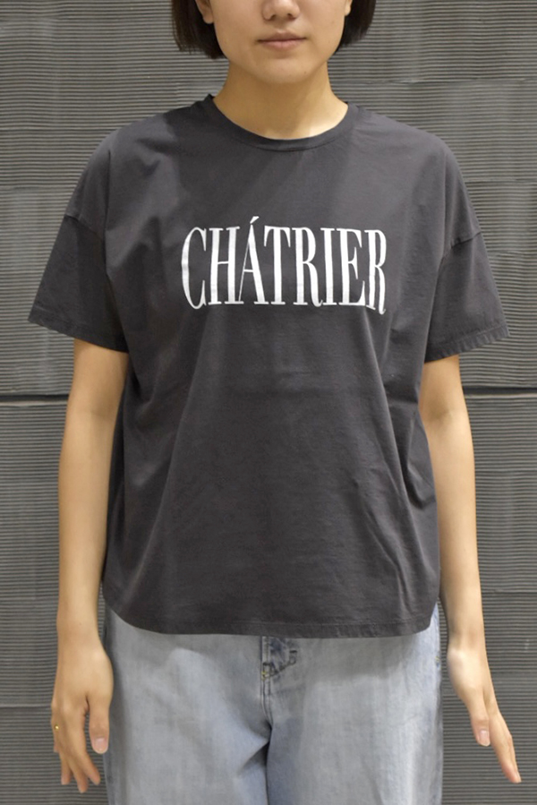 ヘムラウンドのTシャツにロゴが施されたロゴTシャツ。WITHE、BEIGE、CHARCOAL GRAYの3色展開。