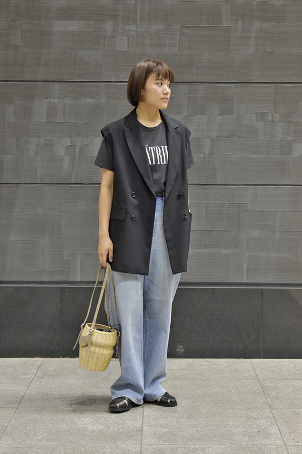 今回はデニムパンツとジレと合わせて綺麗めカジュアルコーディネートに仕上げてみました!チャコールのお色味は、ブラックほど印象が重くなくこなれ感を演出してくれます♪