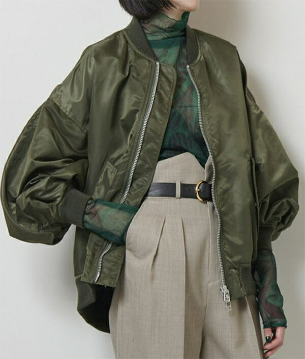 秋立ち上がりの羽織にぴったりの定番MA-1は、ボリュームたっぷりのお袖、丸みのあるシルエット、上品な光沢のナイロン生地が、女性っぽさを際立たせます。