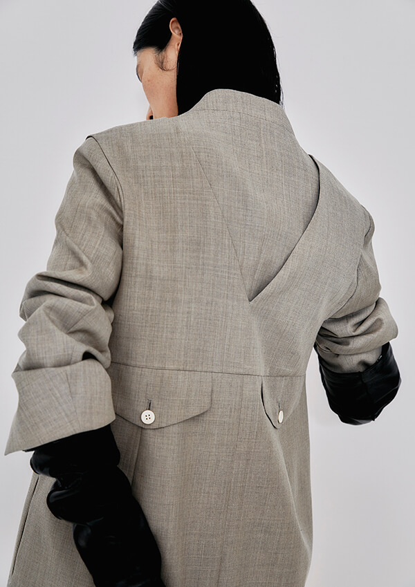 バックスタイルはスラッシュスリットが施されており、デザイン性と動きやすさも兼ね備えています。