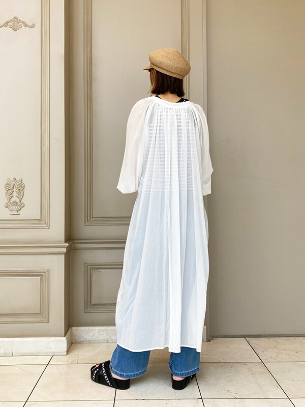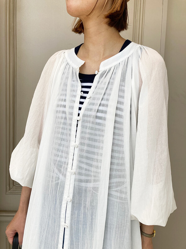 程よい透け感で軽やかで柔らかなコットン素材なので身体が服の中で泳ぐことなく、ウェーブ体型にもしっとり馴染みます。