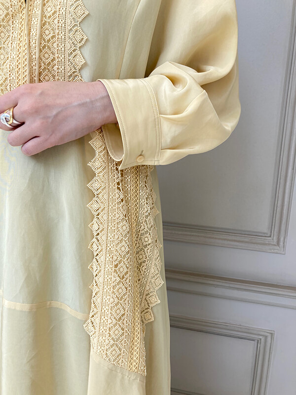 フロントのクルミボタンを開け、羽織としても着れます。前後2WAYでも着れる一枚あるととても重宝する万能ワンピースです。