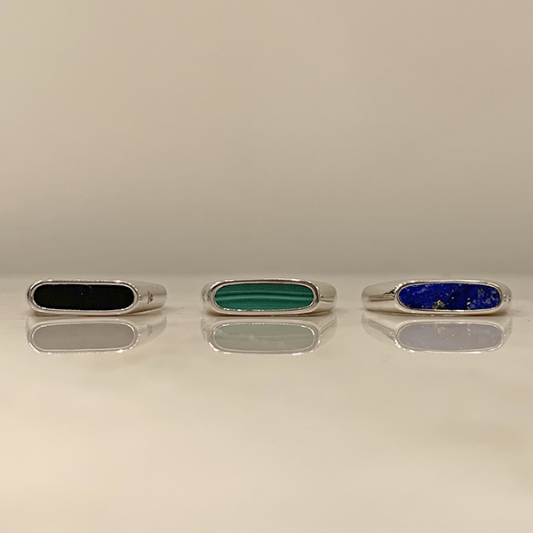 オーバル型のシグネットリングに天然石を合わせた”Mario”シリーズ。