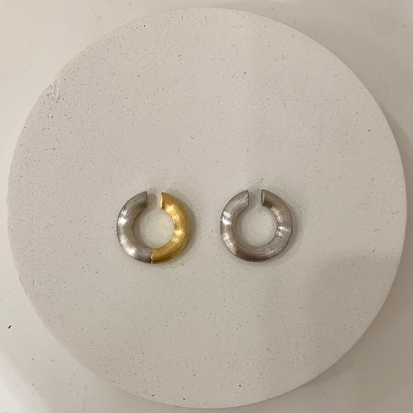 左は定番のイヤカフ。シンプルで洗練されたデザインだからこそ、1点ではもちろん、他のイヤーアクセサリーと組み合わせて使うのもオススメです!