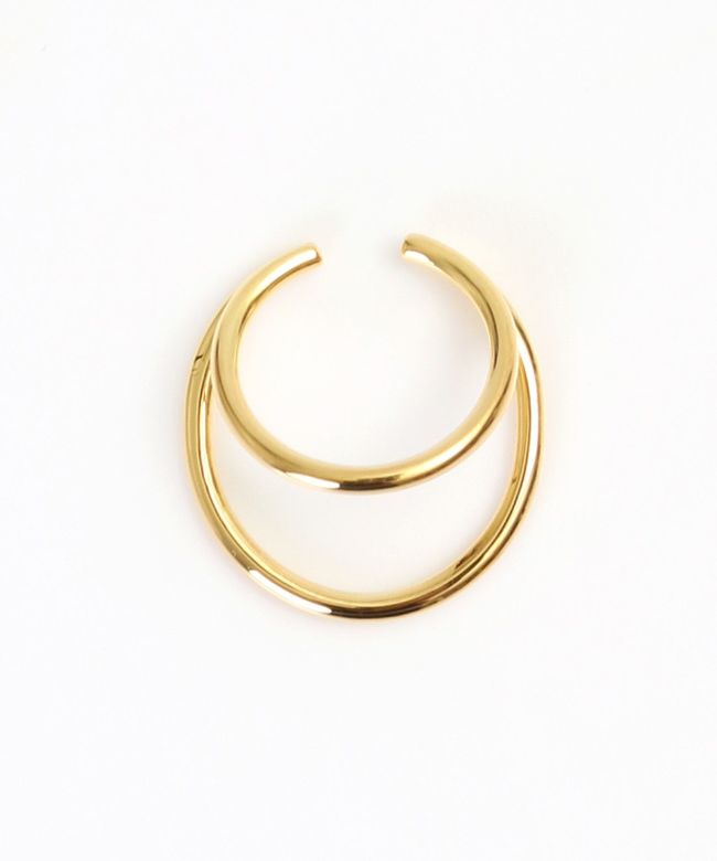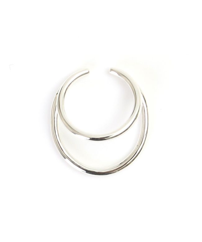 昨シーズンも即完したHYKE(ハイク)定番人気のダブルフープイヤーカフ。楕円と円を重ねたデザインのイヤーカフです。シンプルながらも確かな存在感のあるアイテムで、顔周りにモードなアクセントをプラス。リングとしても着用いただけます。