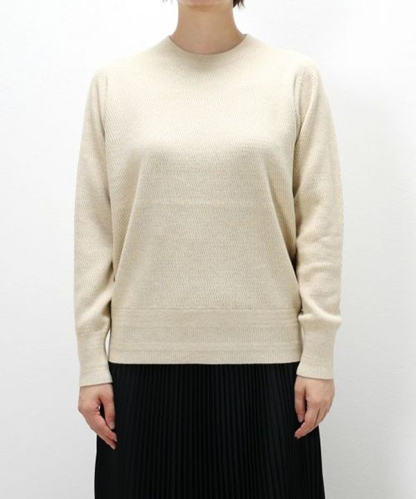 丸胴編みでサイドの縫い目がないので、着心地の良さも抜群。 ネックの開きが程よく、女性らしさを感じさせます。