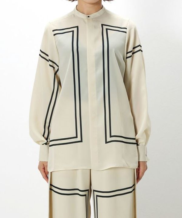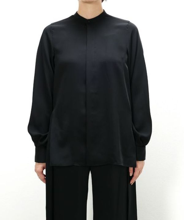 直線的なスタイリッシュさのなかに曲線の女性らしさが垣間見えるブラウスです。