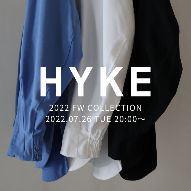 7月26日(火)20時より、パリゴオンラインにてHYKE(ハイク)2022FW COLLECTION を販売開始致します。