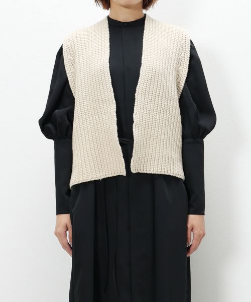 温かみのあるモヘアニットシリーズには今期からクロップドベストも登場します。