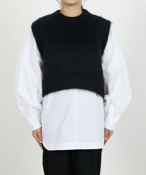 へアリーなモヘアニットを使用した人気のニットシリーズにクロップドベストのモデルが登場。