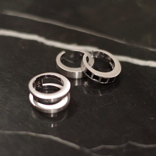 左側のCushion Black Onyxは全ラインナップで最も人気のデザインで、ブランドアイコンでもあるリングです。