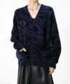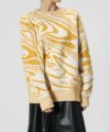 ツートーンのマーブル柄が目を惹くジャガーニットプルオーバーとカーディガンはどちらもイエローとネイビーの2色展開です。