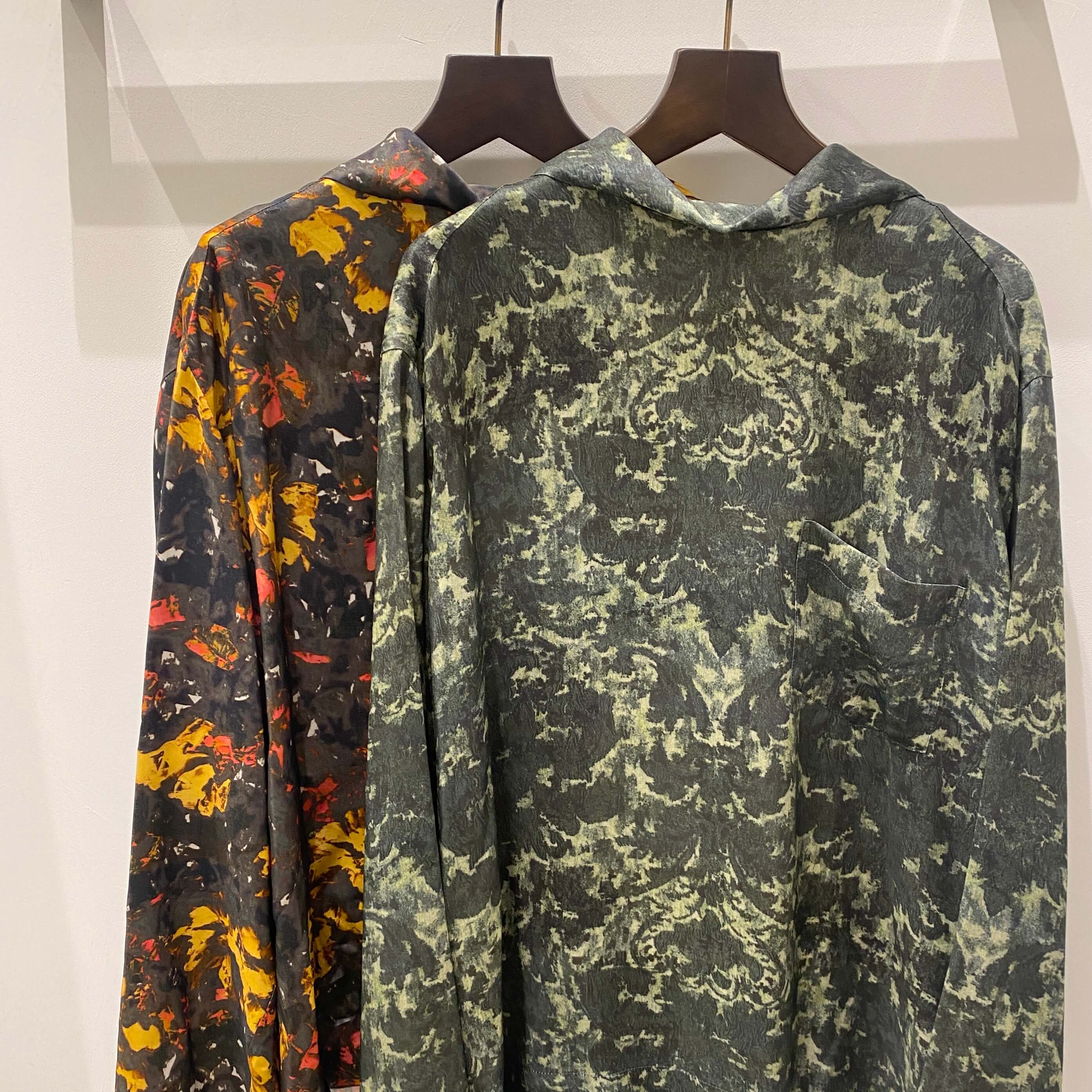 バックボタンの比翼仕立てとなっており、オリジナルプリントが映えるようなすっきりとしたルックスに仕上がっています。