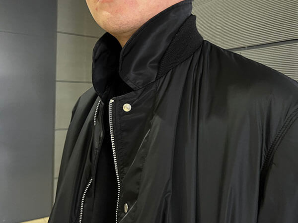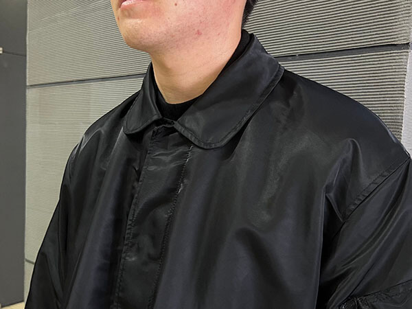 袖口のリブによる袖のたるみや、太い糸で縫うことによって起こる生地の縮みが、MA-1を忠実に再現しています。