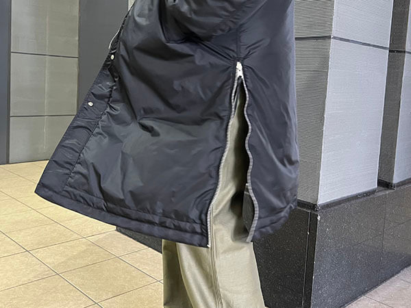 左の裾にはジップのスリットも入っており、シルエットの変化もお楽しみいただけます!