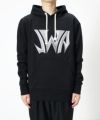 ゴシックロゴのスウェットパーカーは太めのコードがアクセントになっています。