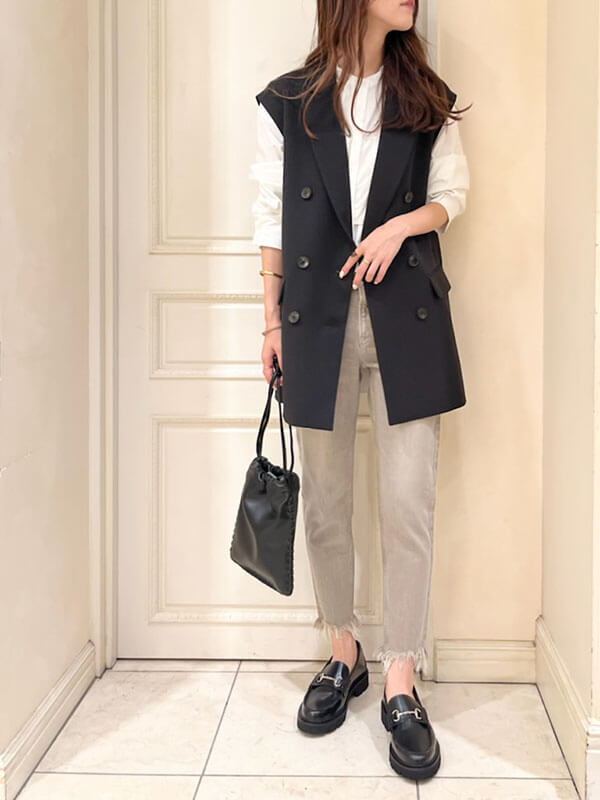 今年トレンドのジレもデニムと合わせてカジュアルに。