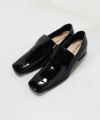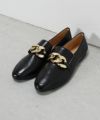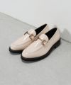 マットなビットがポイントのローファーはガラス革で程よい光沢感のあるレザーが高級感+モードな印象に。