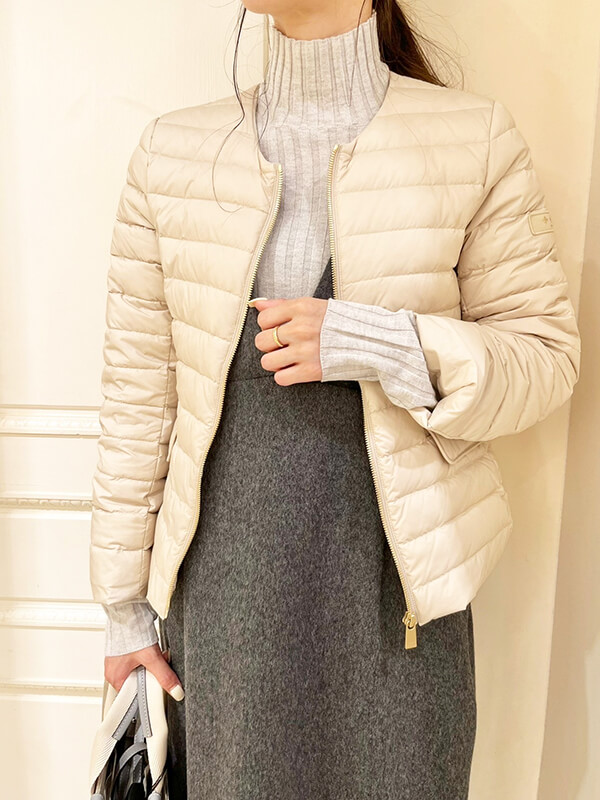 ノーカラーのデザインになっているため、アウターとしてはもちろん、インナーダウンとしても使って頂けます☺︎