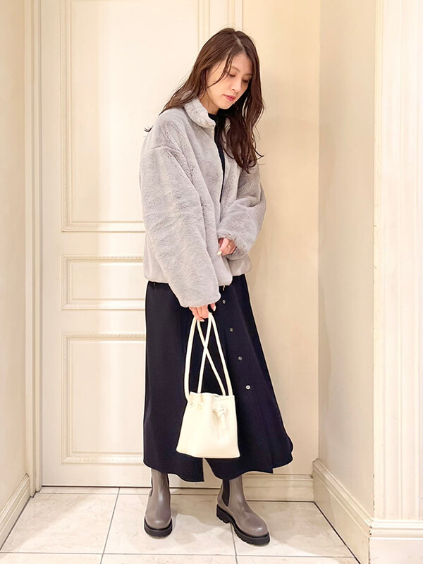 オーバーサイズのボアブルゾンとなっており、お袖にもしっかりゆとりがあるため、中に厚手のニットやパーカーなども着て頂けるサイズ感です!
