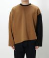 非対称なのは配色だけではありません。フロントの裾ラインもアシンメトリー仕様になっていて左の裾にはスリットを入れています。インナー使いしてもデザインが分かりやすくしっかりと主張してくれるので、簡単にコーディネートにアクセントを加えることが出来ます。