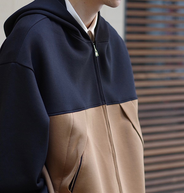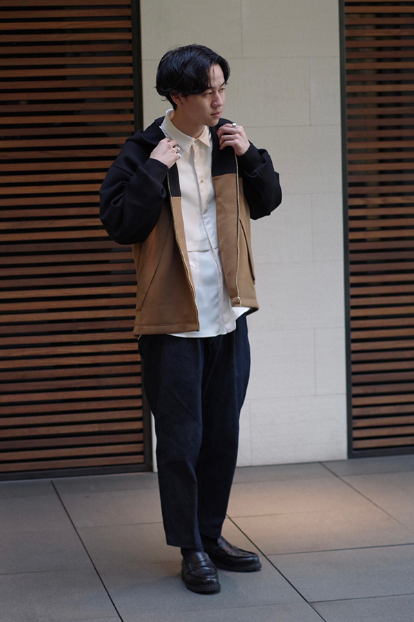 ジップフーディーというカジュアルでラフなテイストのアイテムですが、クルニならではのデザインと生地感が相まってキレイ目な着こなしにも取り入れられるので、幅広くコーディネートを楽しんで頂けます!
