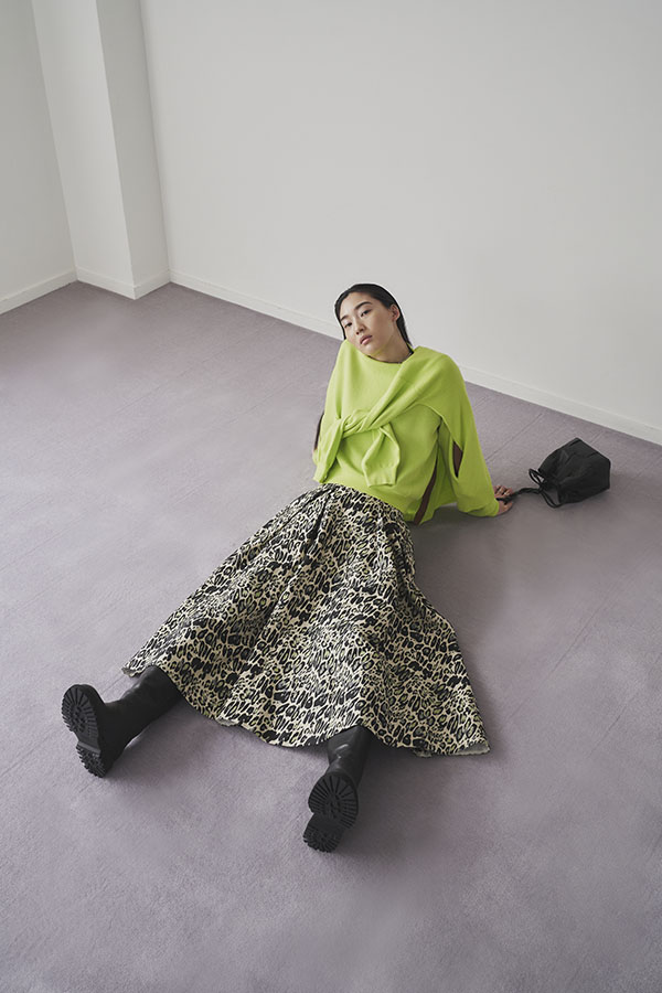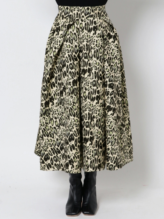 ジャカードで織りあげたレオパード柄は、生地に立体感が出て、上品さの出る一枚。